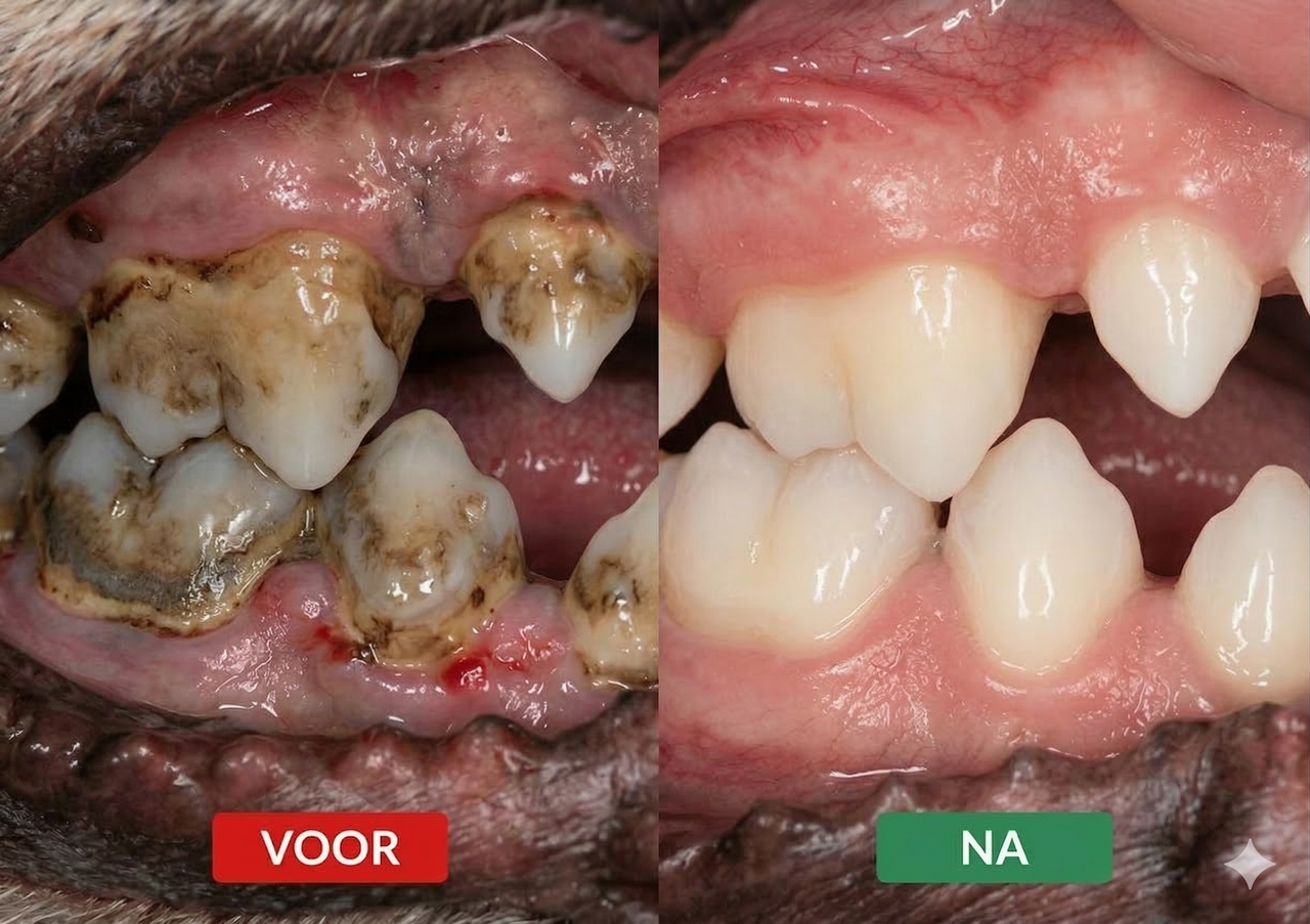 Nee. Tandenpoetsen blijft altijd de basis. Pawrful Gezond Gebit is ontwikkeld als dagelijkse ondersteuning, vooral voor honden waarbij poetsen lastig is of onvoldoende resultaat geeft.