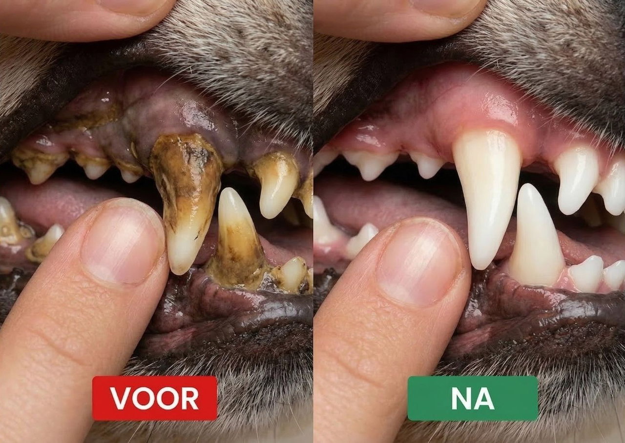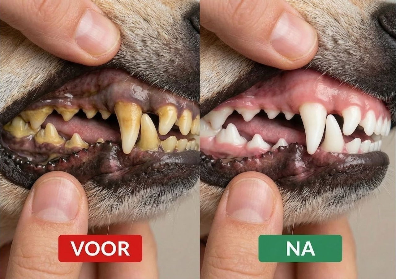 Plaque wordt minder zichtbaar, de adem merkbaar frisser en het gebit witter. Veel baasjes zien hier de eerste resultaten. Hou vol!